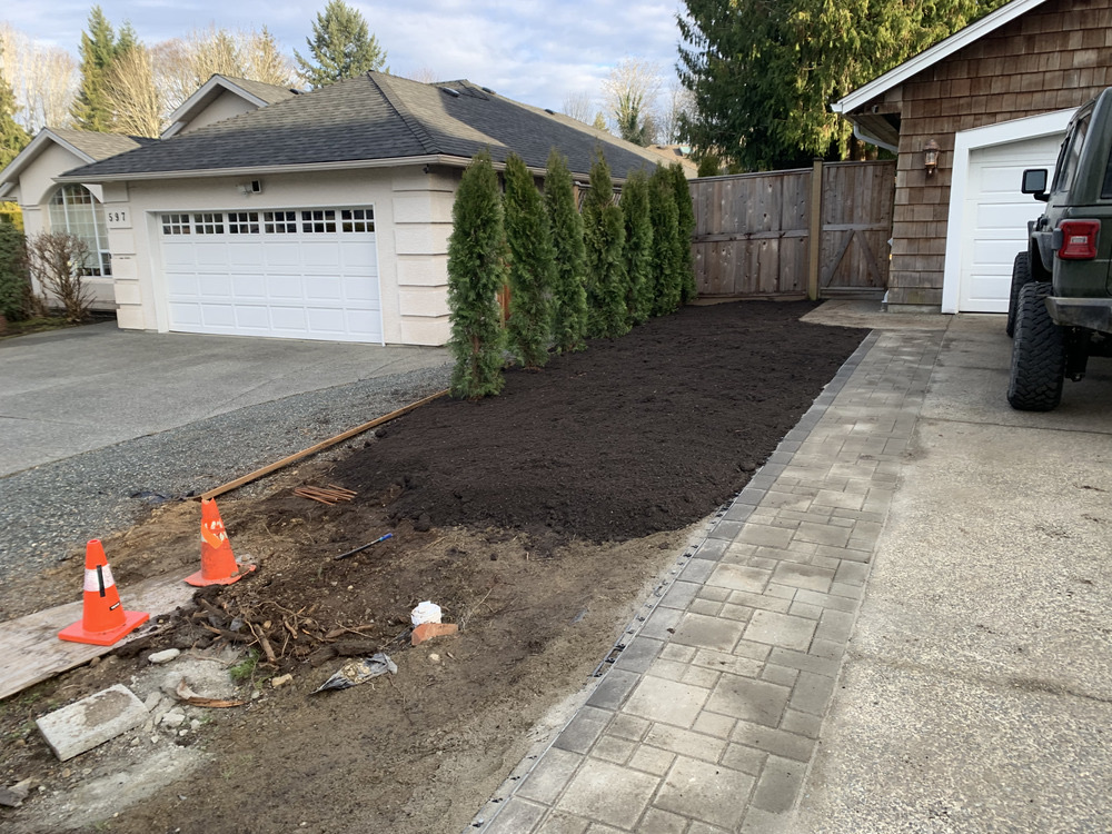 New retaining walls, patio installs, curbing days, irrigation projects, and full landscape builds happening right now around Parksville and Qualicum Beach.